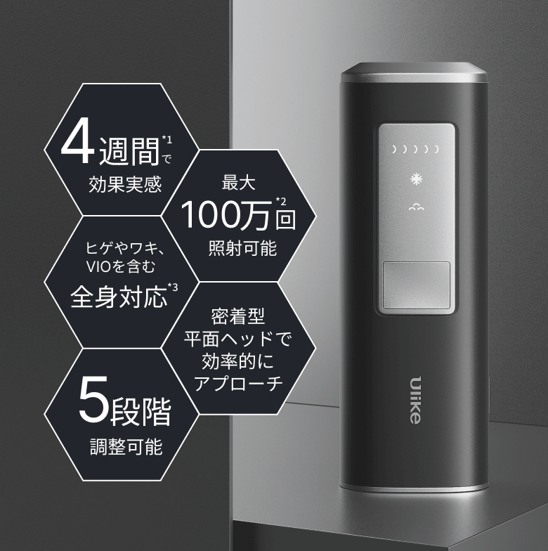 *1トリートメントスケジュールに従った場合。効果には個人差があります。*2 当社の耐久性試験結果に基づき算出。最大100万回連続で照射します。