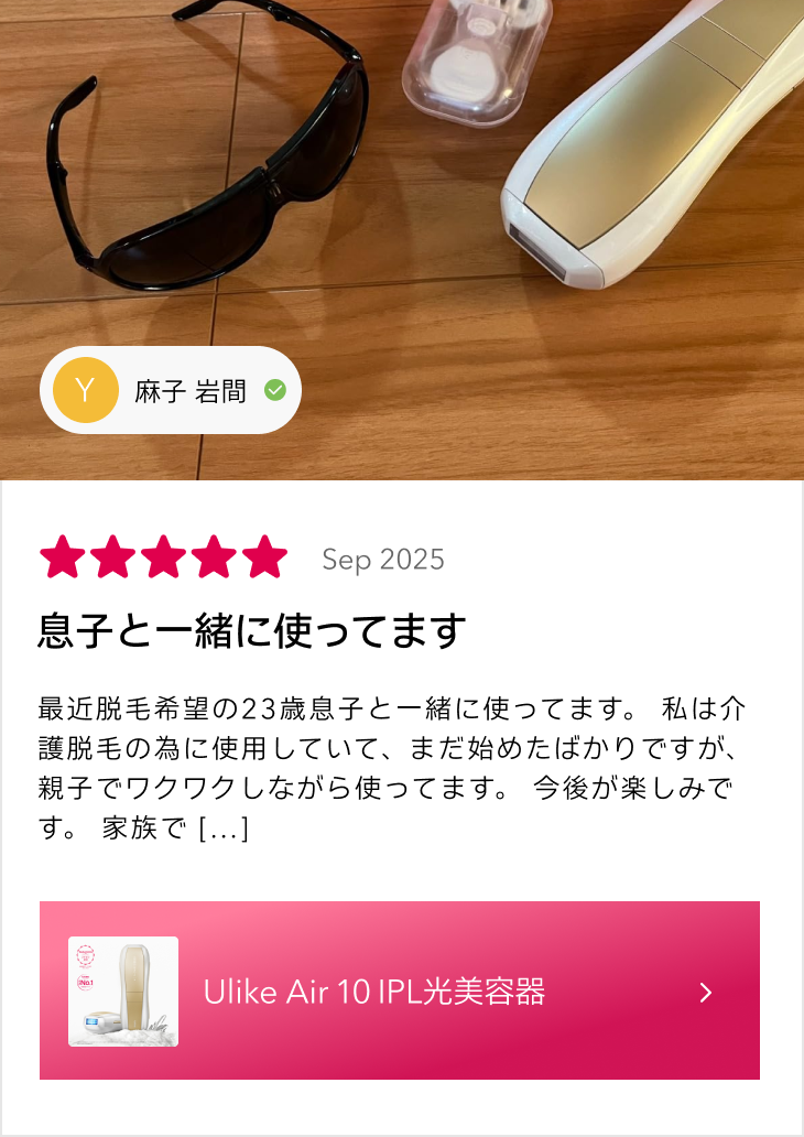 ご安心ください。 UlikeのIPL脱毛技術は、数多くの臨床試験に基づいて開発されています。現在、IPLは医療機関から一般家庭まで、幅広く信頼されている脱毛方法です。